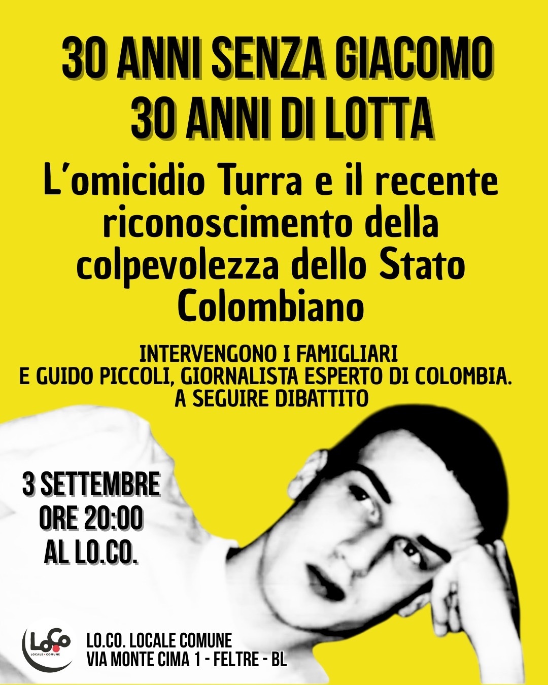 MERCOLEDì 3 SETTEMBRE ALLE ORE 20:00 PRESSO LO.CO. VIA MONTE CIMA 1, FELTRE BL Il 3 settembre 2025 saranno passati trent’anni dall'omicidio